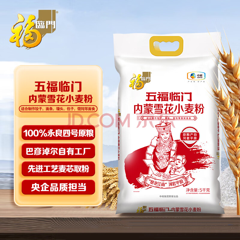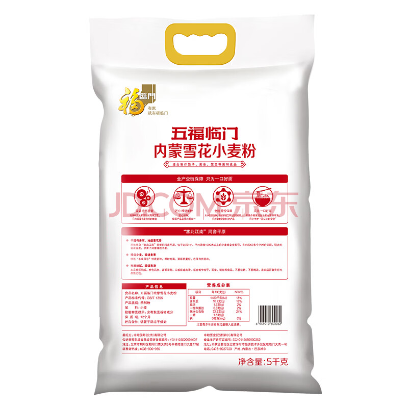 商品名称:福临门五福临门内蒙雪花小麦粉5kg