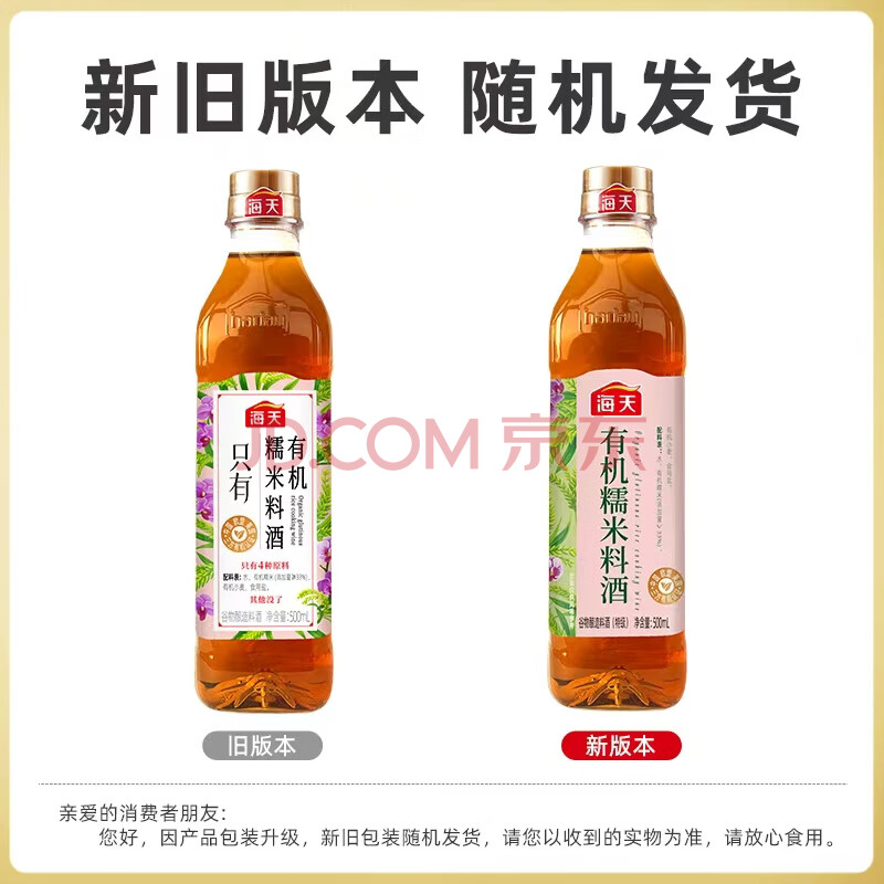 商品名称:海天 有机料酒500ml 糯米 去腥解膻 蒸炒炖煮