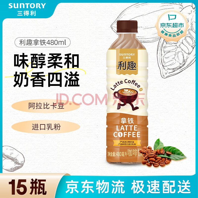 商品名称:三得利 利趣拿铁 即饮咖啡饮料 480ml*15瓶整箱装 新老包装随机发货