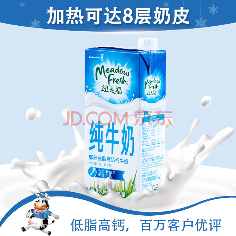 商品名称:纽麦福(Meadow fresh)新西兰进口 3.5g蛋白质部分脱脂纯牛奶1L*12盒低脂高钙奶送礼佳选