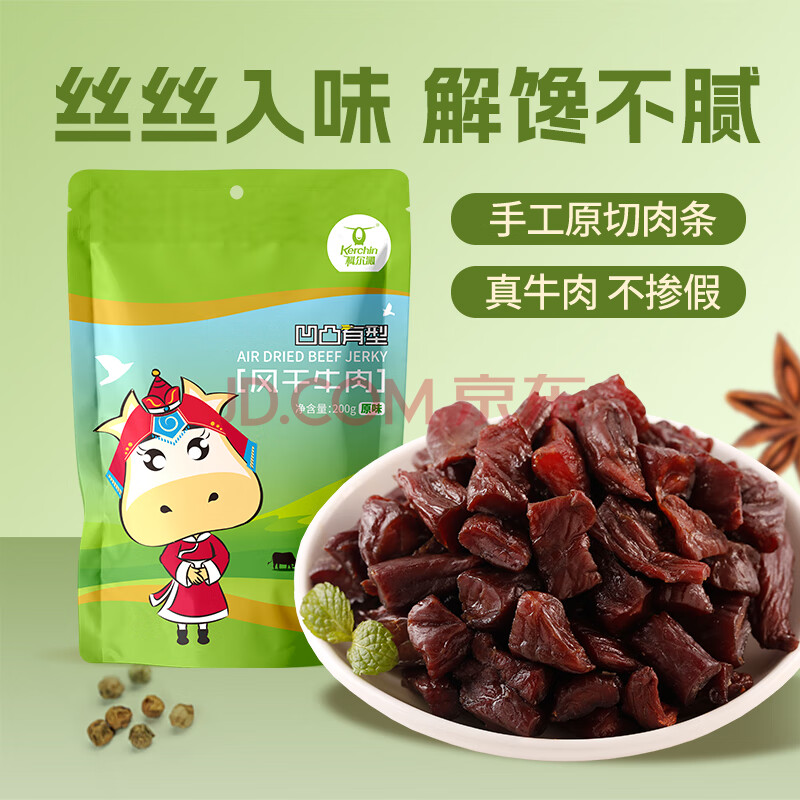 > 科尔沁 凹凸有型风干牛肉干原味200g 小块肉干肉脯 休闲零食