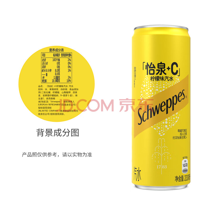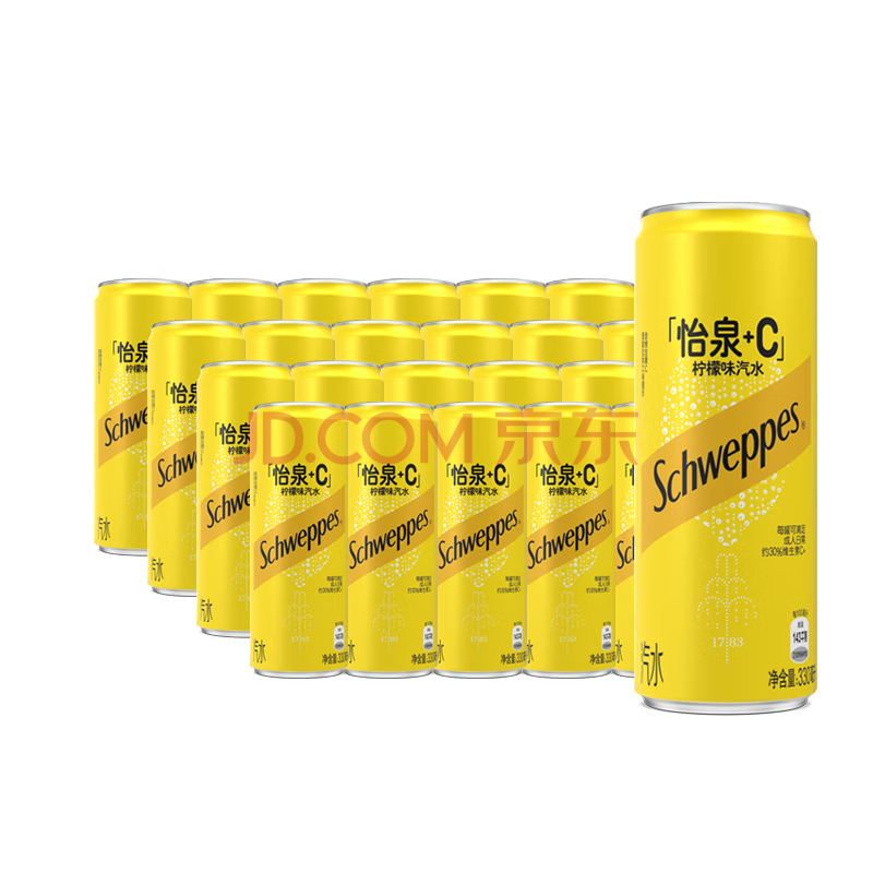 > 可口可乐(Coca-Cola)怡泉 Schweppes +C 柠檬味 汽水 含维C 330ml*24罐 整箱调酒