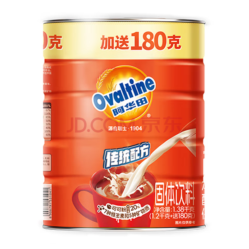 商品名称:阿华田(Ovaltine)可可粉罐装1.38kg 营养早餐代餐牛奶冲饮即食蛋白型固体饮料1380
