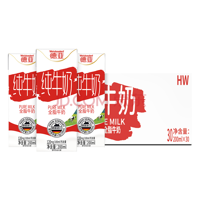 商品名称:德亚(Weidendorf)德国进口高钙全脂纯牛奶200ml*30整箱装儿童学生营养早餐