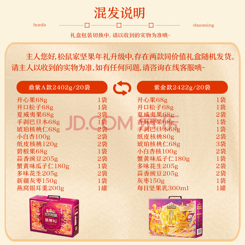 商品名称:三只松鼠坚果礼盒2422g/20袋 零食干果开心果过年新春送礼长辈品企业团购
