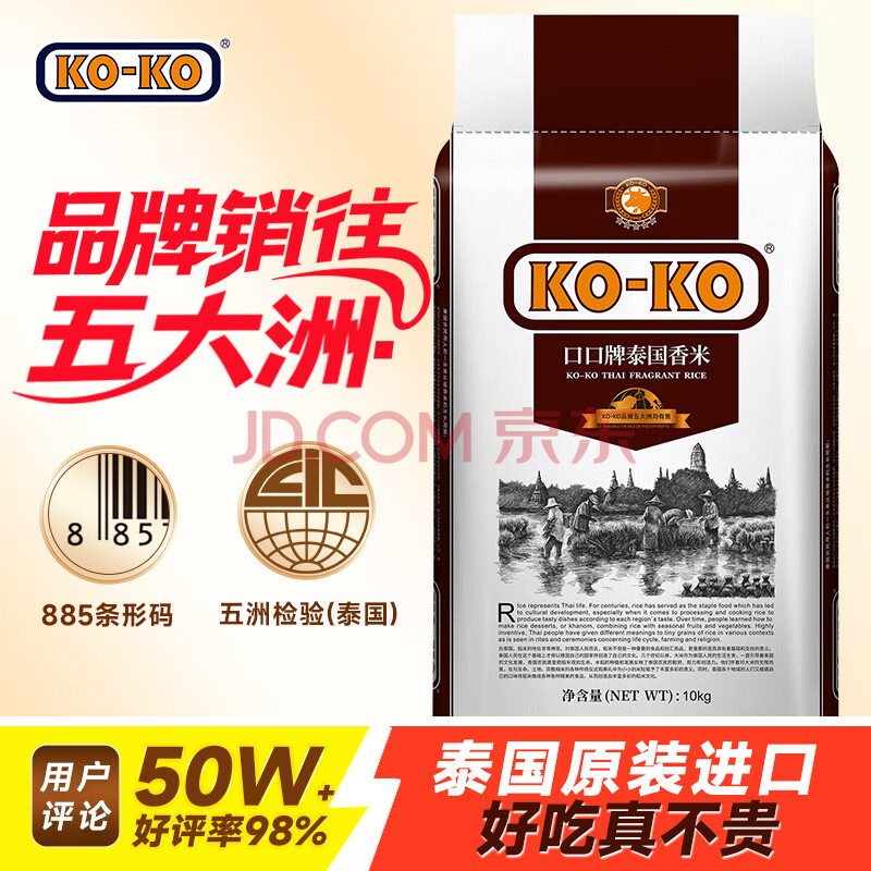 商品名称:KO-KO(口口牌) 泰国香米 大米20斤 原装进口 长粒米 koko泰国香米