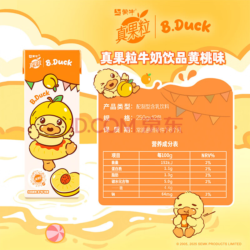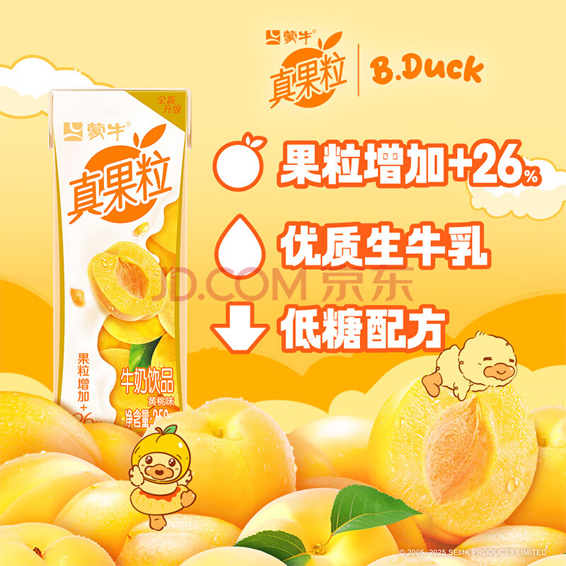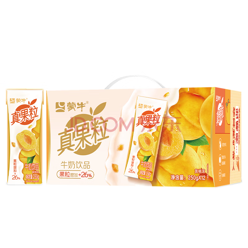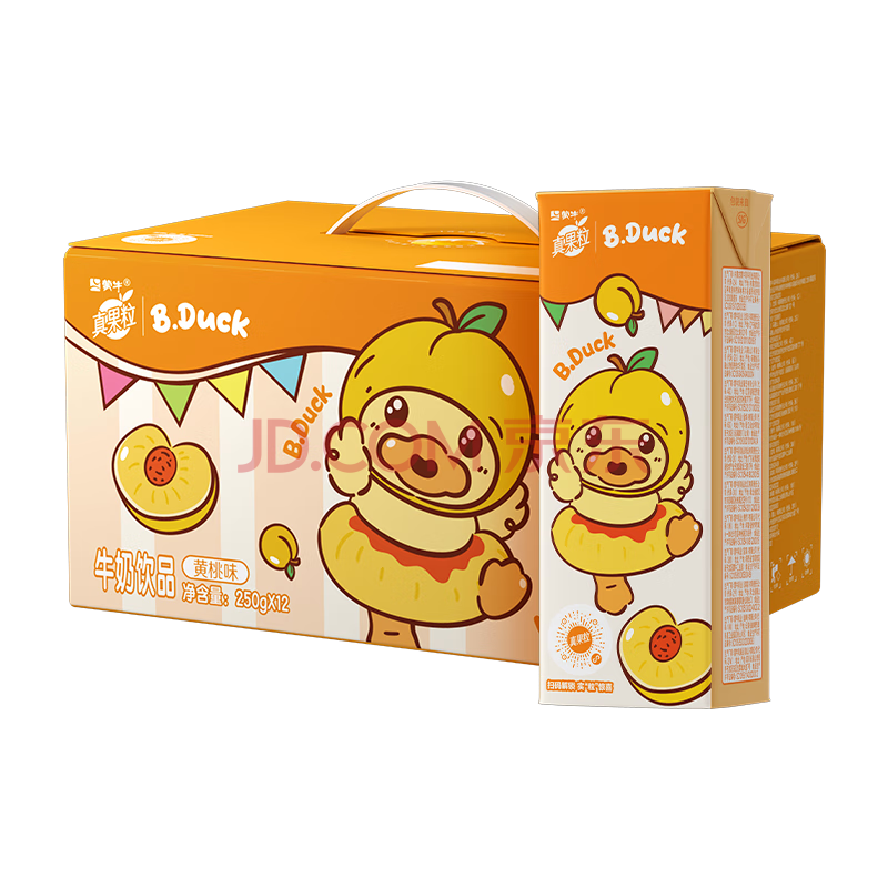 商品名称:蒙牛真果粒黄桃味牛奶饮品250g*12盒 小黄鸭IP 礼盒新老包装 含乳饮料