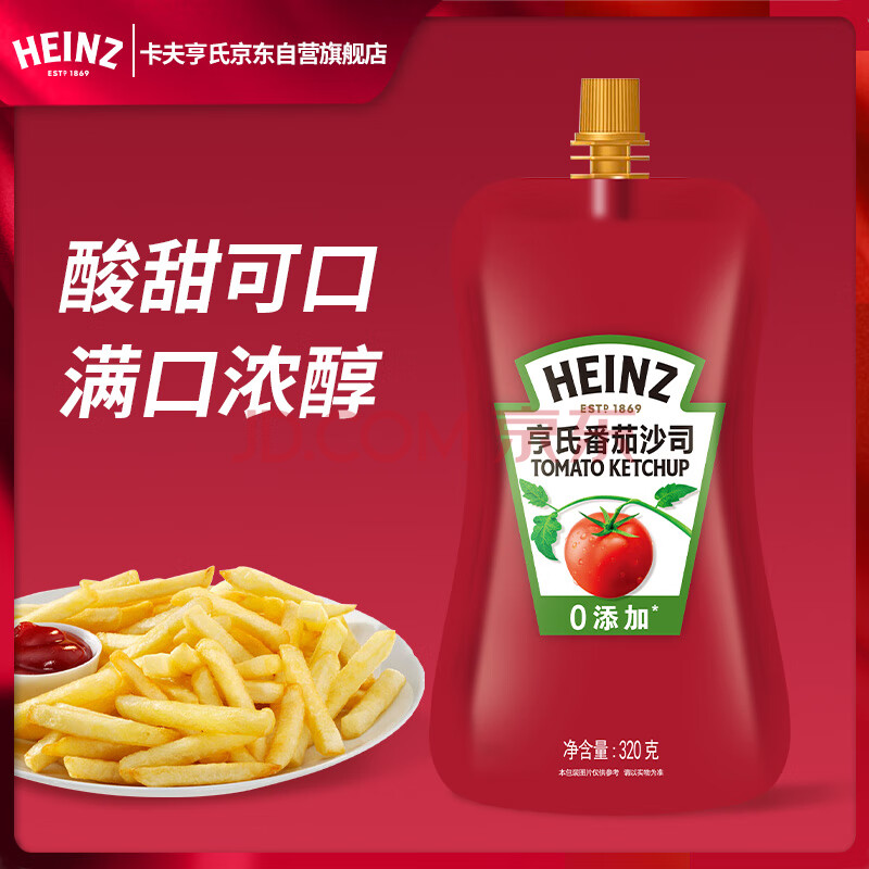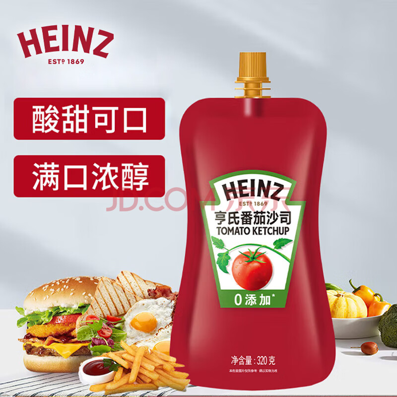 商品名称:亨氏(Heinz) 番茄酱 袋装番茄沙司 意大利面薯条酱 320g 卡夫亨氏出品