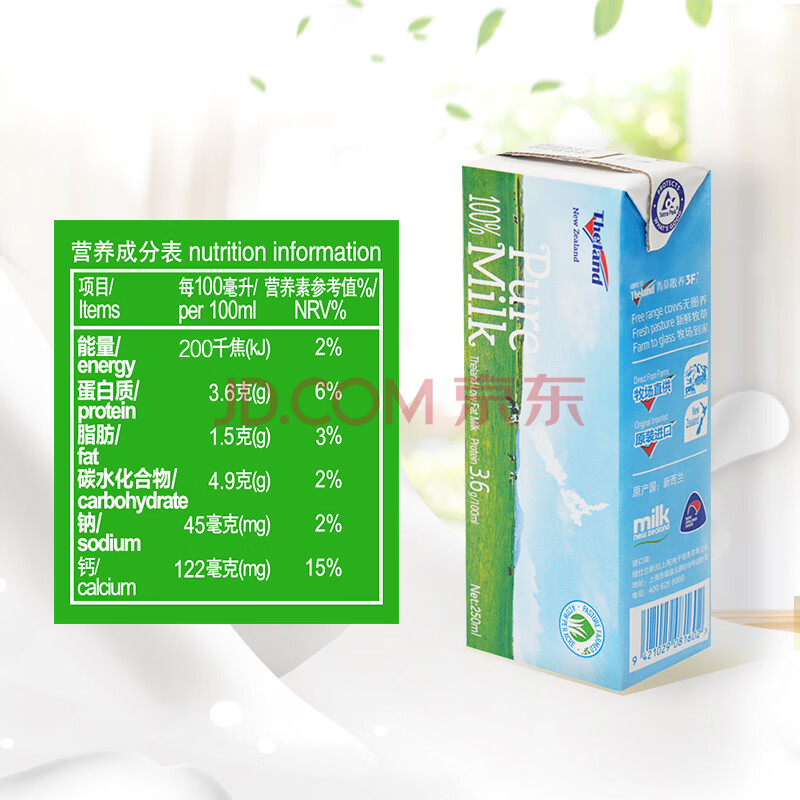 商品名称:纽仕兰草饲3.6g蛋白高钙低脂纯牛奶100%生牛乳250ml*24盒原装进口 年货
