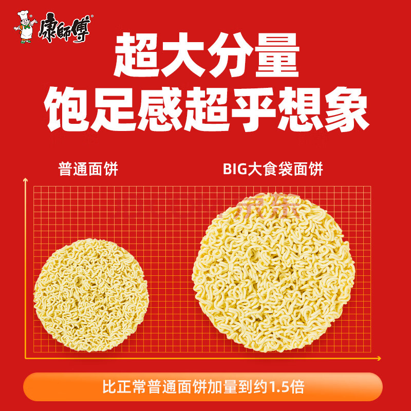 商品名称:康师傅 方便面 大食袋红烧牛肉面五连包145g*5 泡面袋装速食 方便食品