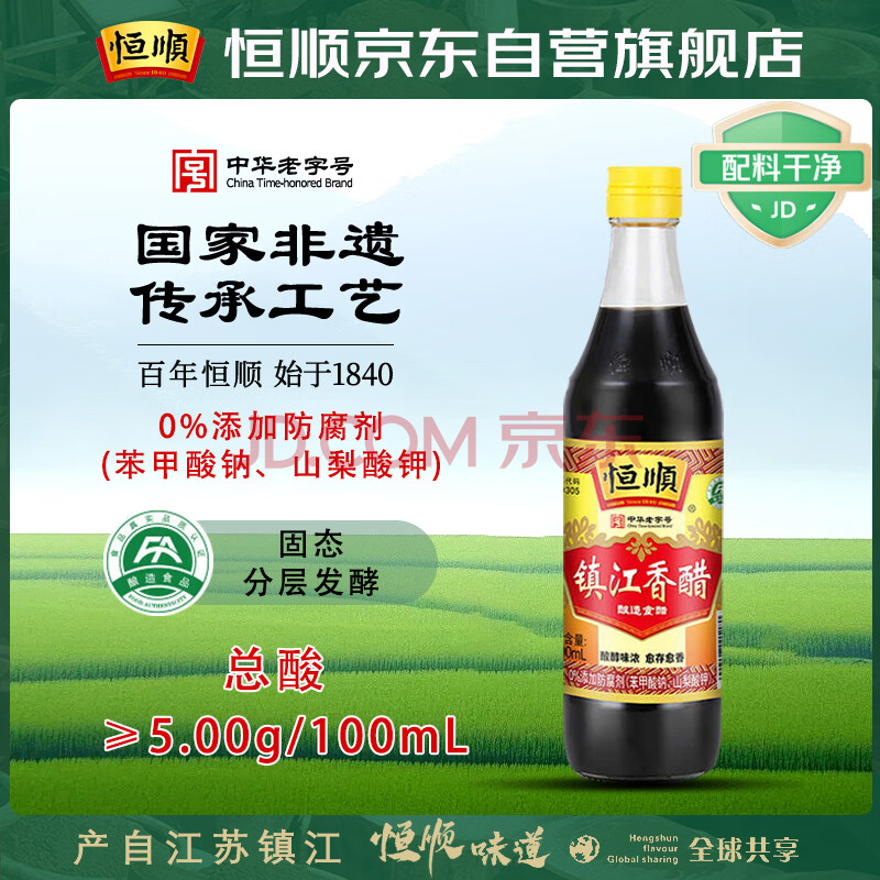 商品名称:恒顺镇江香醋 新B香 5度 500ml 糯米酿造一级香醋 不添加防腐剂