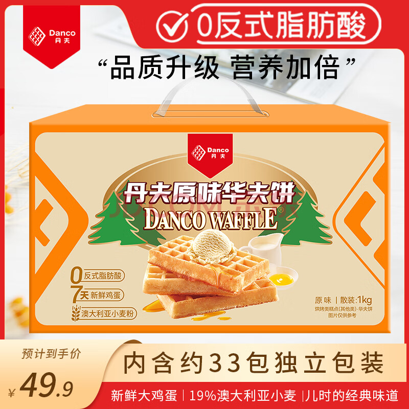 > 丹夫 经典原味华夫饼1000g送长辈健康礼盒茶点心蛋糕面包零食早餐