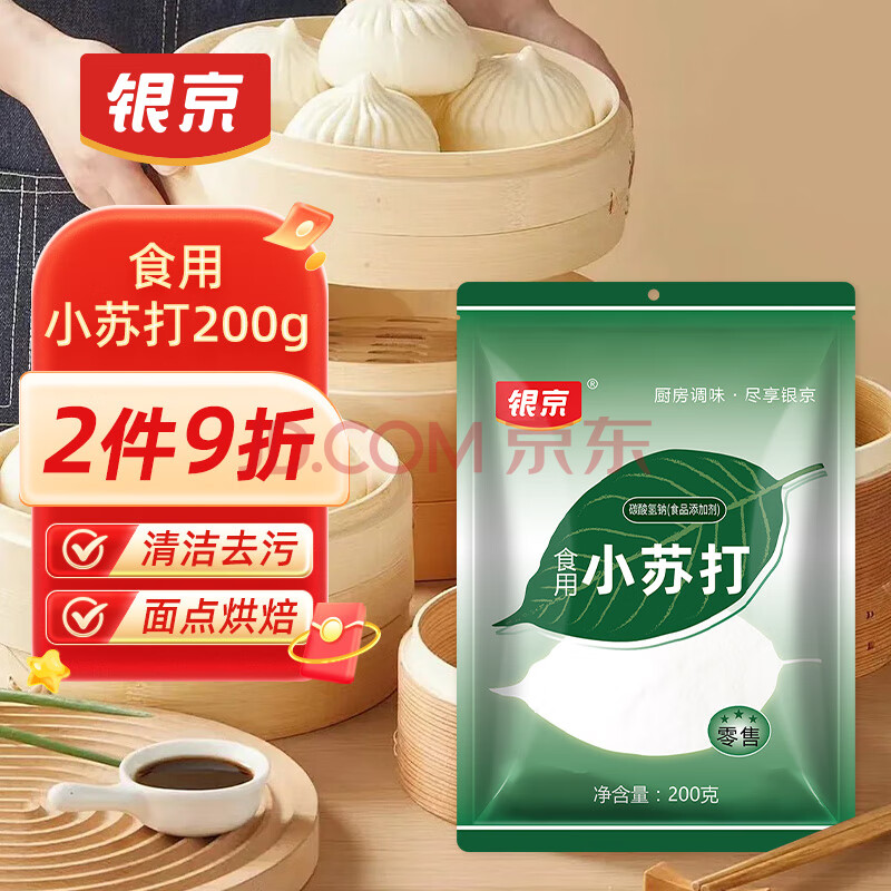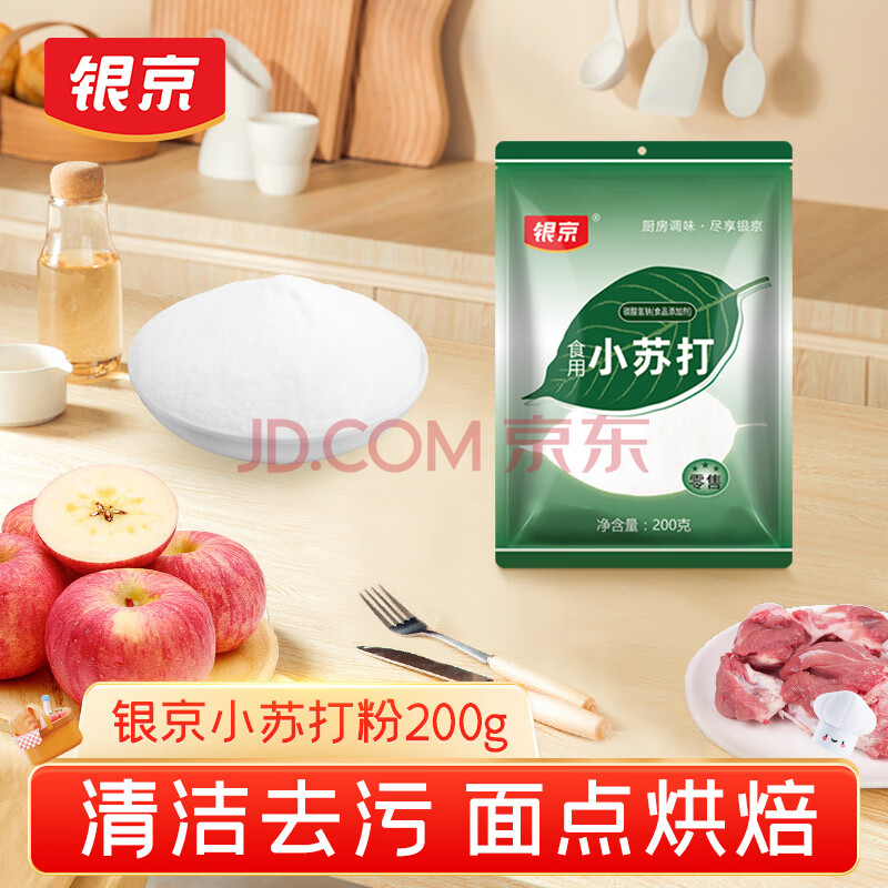 > 银京食用小苏打粉200g 袋装 梳打粉饼干面包烘焙原料家用清洁去污除垢