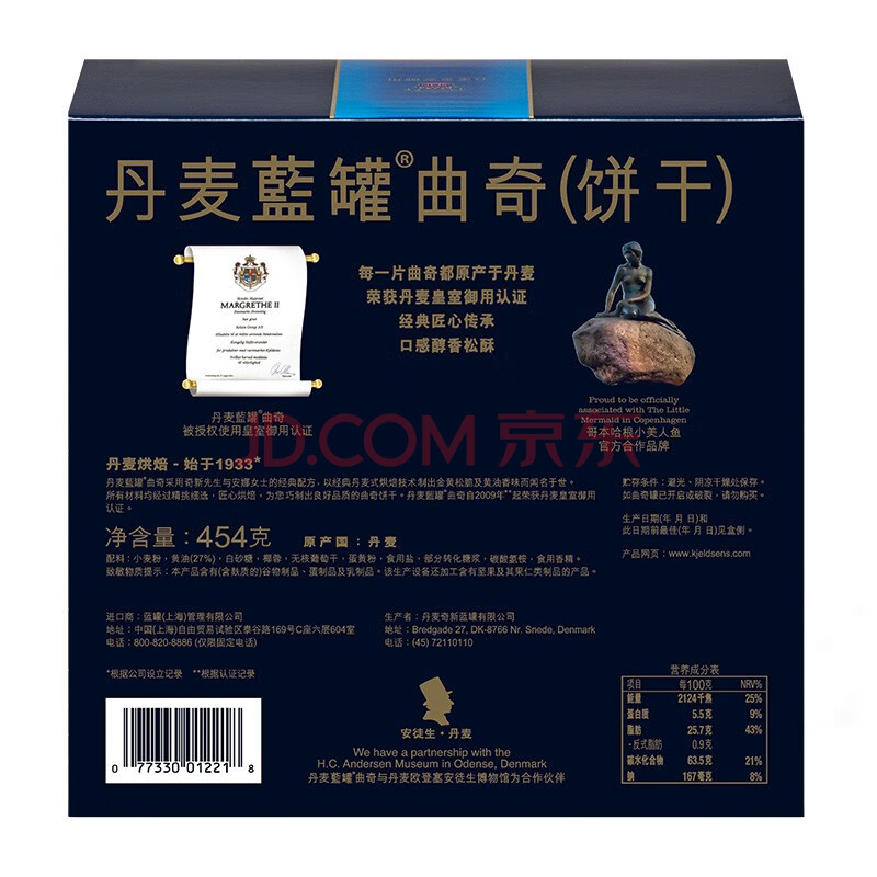 商品名称:丹麦蓝罐(Kjeldsens)曲奇饼干礼盒 454g 丹麦原装进口 零食年货送礼企业团购