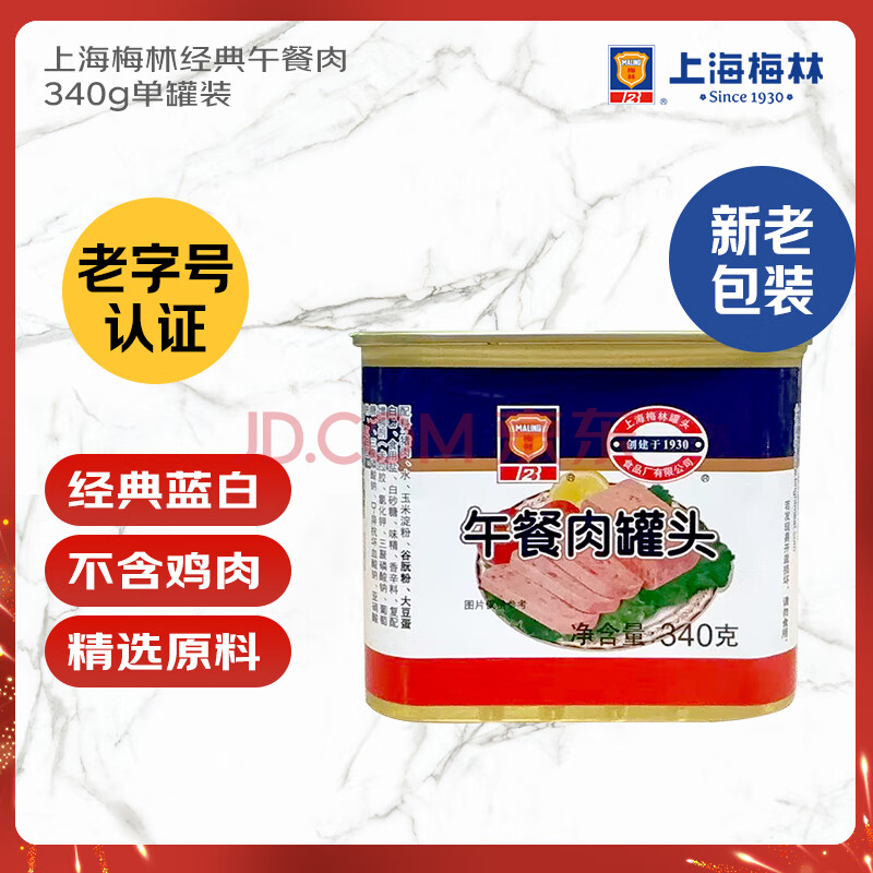 商品名称:MALING 上海梅林经典午餐肉罐头340g 早餐零食火锅食材不含鸡肉