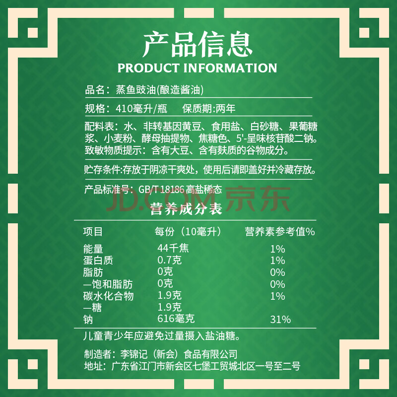 商品名称:李锦记 蒸鱼豉油410ml 0添加防腐剂 蒸炒白灼汁凉拌提鲜 酱油生抽