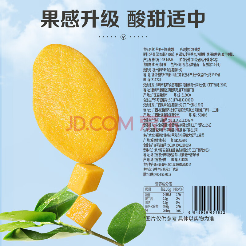 商品名称:百草味芒果干120g/袋 水果干特产菲律宾风味办公零嘴小吃蜜饯果脯烘焙