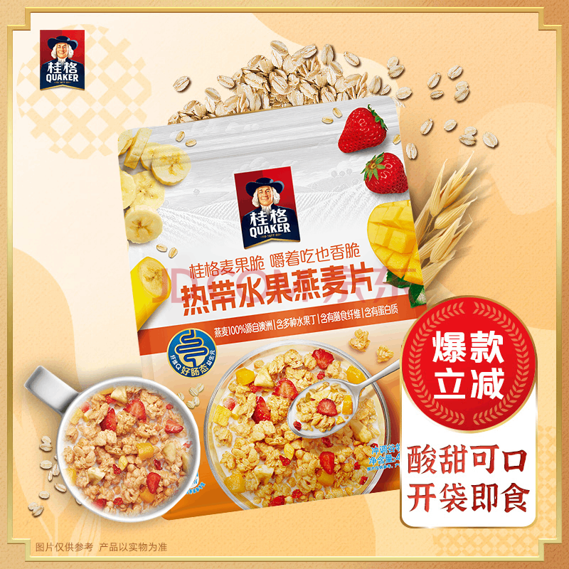 > 桂格(QUAKER)热带水果燕麦片420克 休闲零食 开袋即食 添加冻干芒果丁