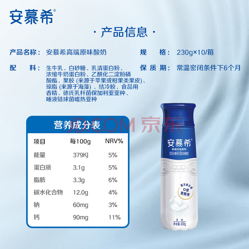 商品名称:伊利安慕希高端原味常温酸牛奶230g*10瓶 礼盒装 10月底产