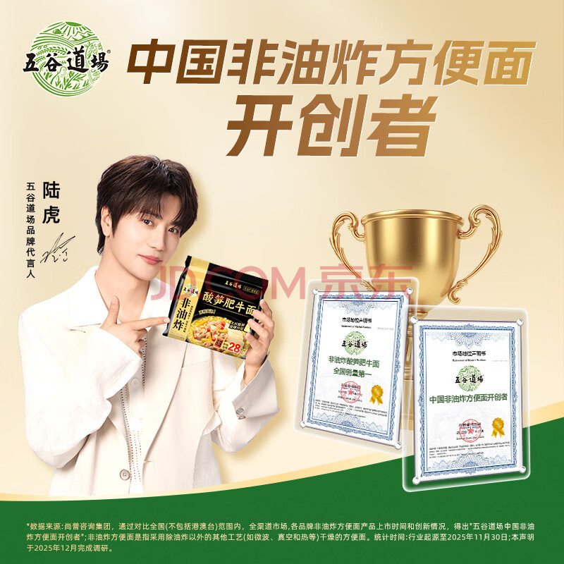 > 五谷道場非油炸方便面 骨汤蔬菜番茄牛腩面四连包112gx4袋 免煮早餐泡面