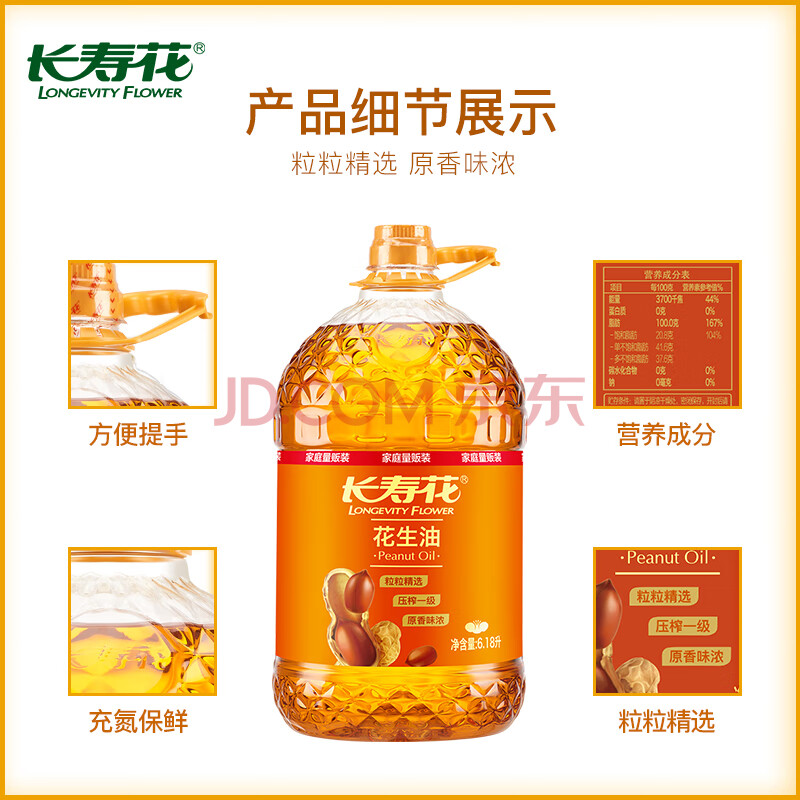 商品名称:长寿花【保真花生油】压榨一级花生油6.18L 食用油 年货热卖