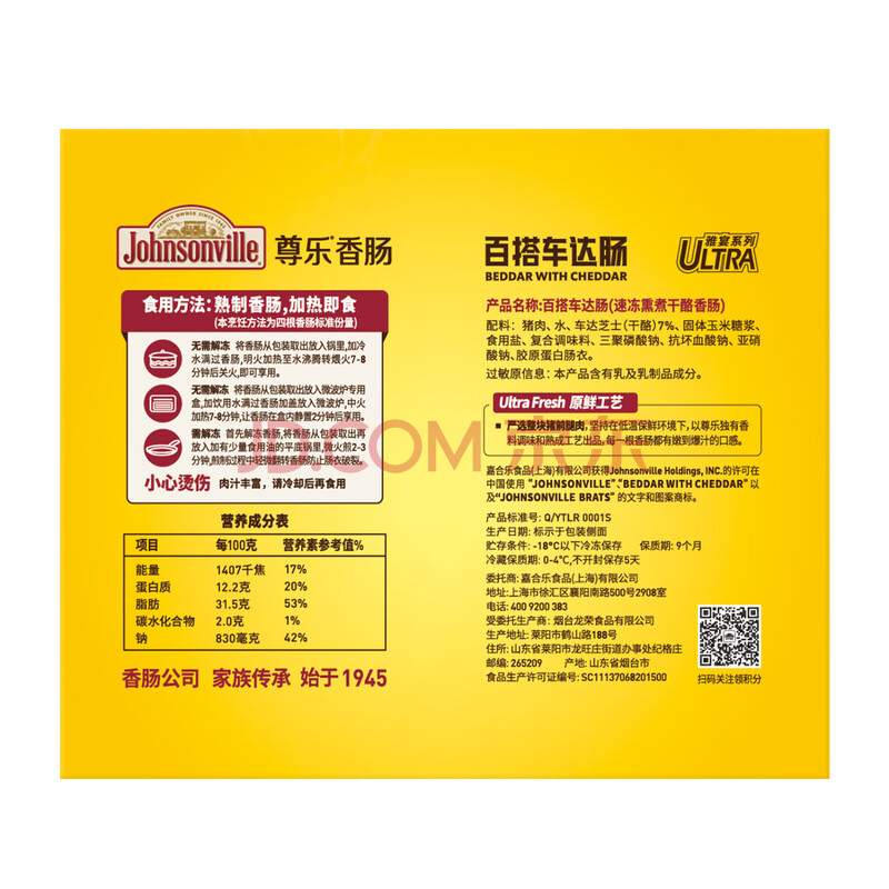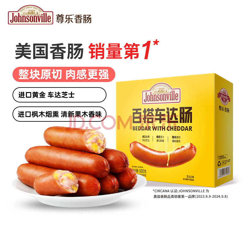 商品名称:尊乐 百搭车达肠 520g/盒 芝士烤肠 早餐肠 冷冻熟食 香肠 火腿肠 烧烤食材
