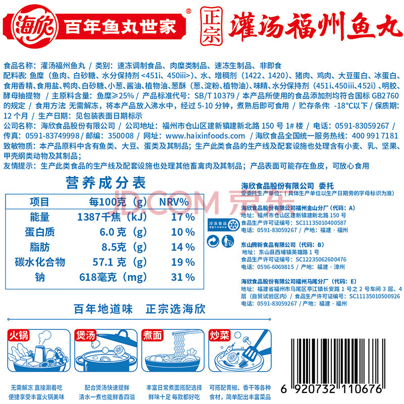 商品名称:海欣灌汤福州鱼丸500g国产包心丸子烧烤关东煮早餐麻辣烫火锅食材