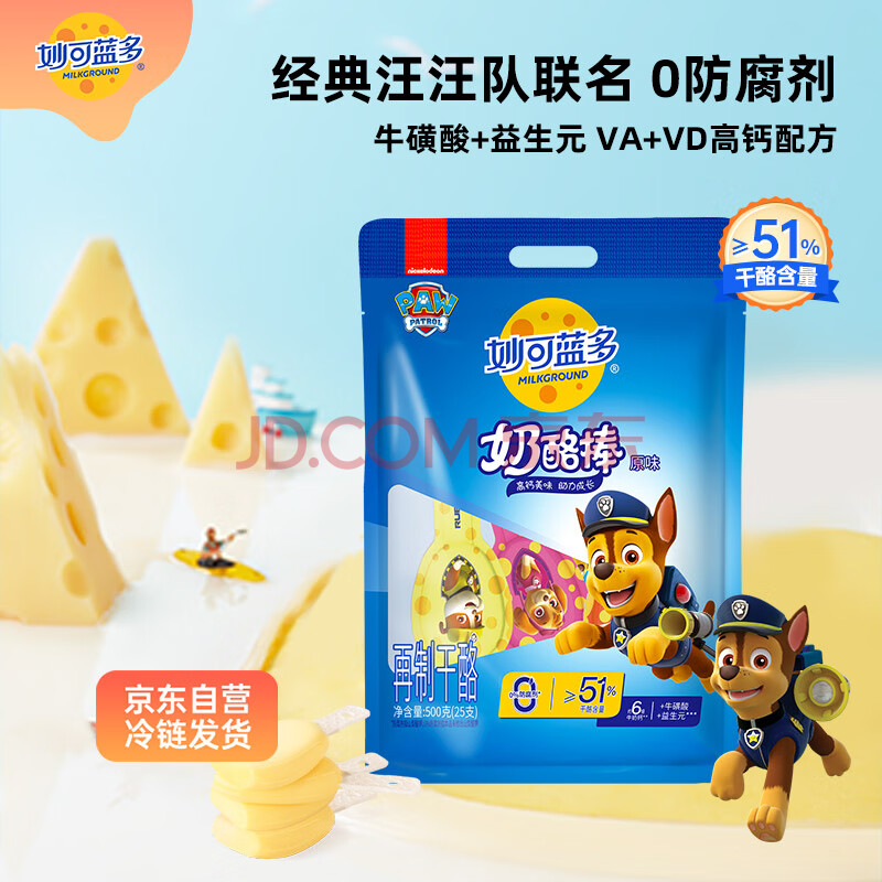 商品名称:妙可蓝多 汪汪队儿童奶酪棒500g 原味 高钙0防腐剂健康营养宝宝零食