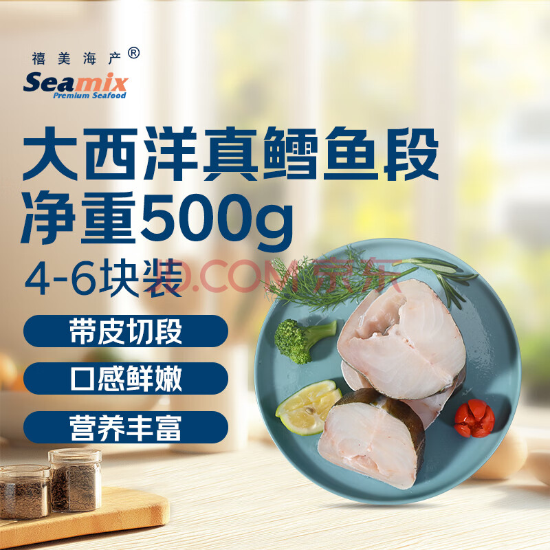 商品名称:禧美海产 冷冻大西洋真鳕鱼段净重1斤/袋 4-6块 带皮切段 海鲜水产
