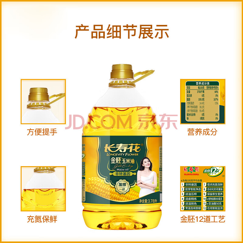 商品名称:长寿花金胚玉米油 3.78L*2 非转基因压榨一级食用油 烘焙家用粮油套装