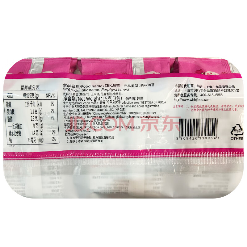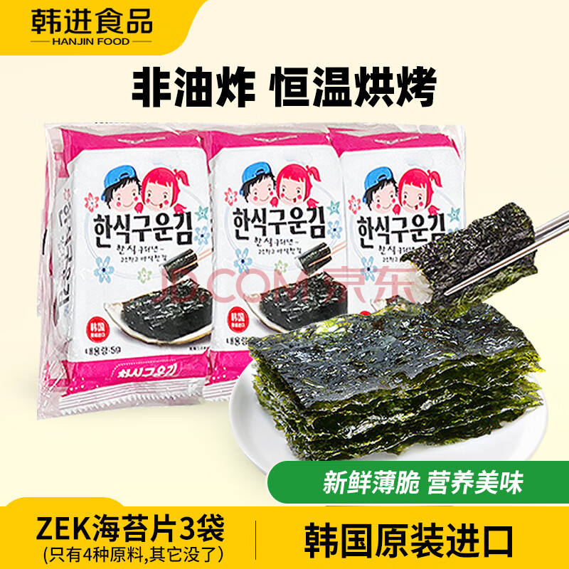 商品名称:Zek韩国进口 经典原味海苔紫菜包饭寿司即食烤海苔 儿童零食5g*3包