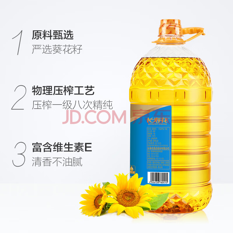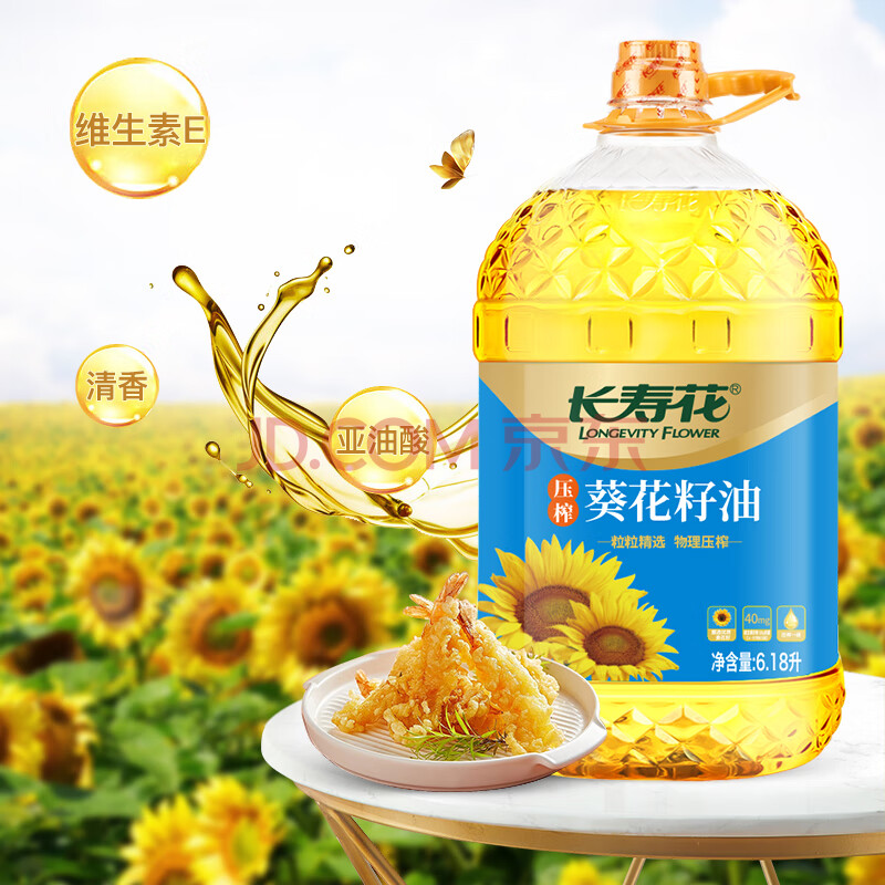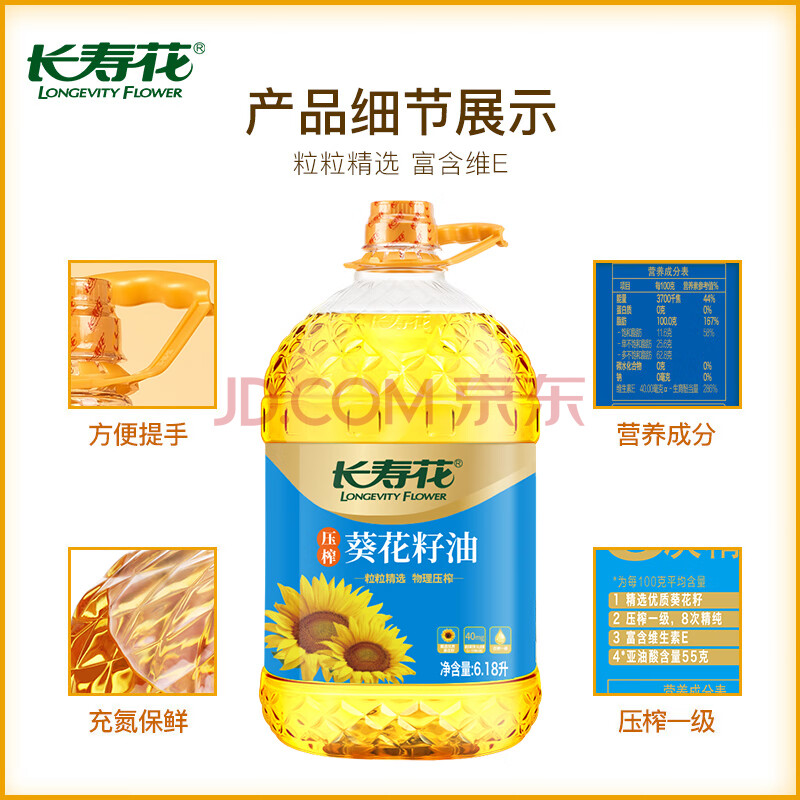 商品名称:长寿花葵花籽油 6.18L 家用压榨一级食用油 食品粮油