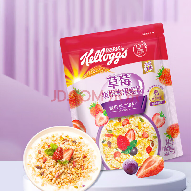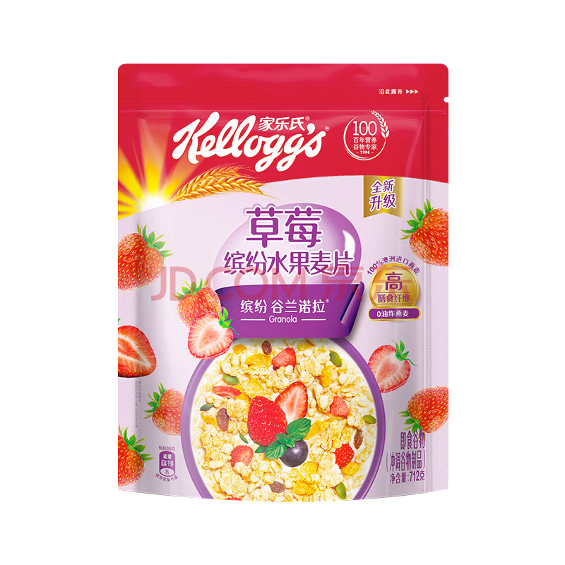 家乐氏草莓缤纷水果麦片谷物脆代餐早餐冲饮即食家庭大包装712g