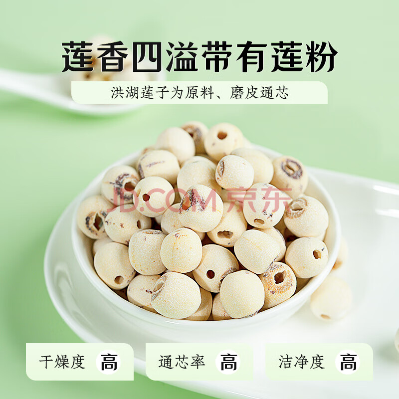 商品名称:绿帝 磨皮莲子 山珍干货 去心无心 通心 白莲子500g