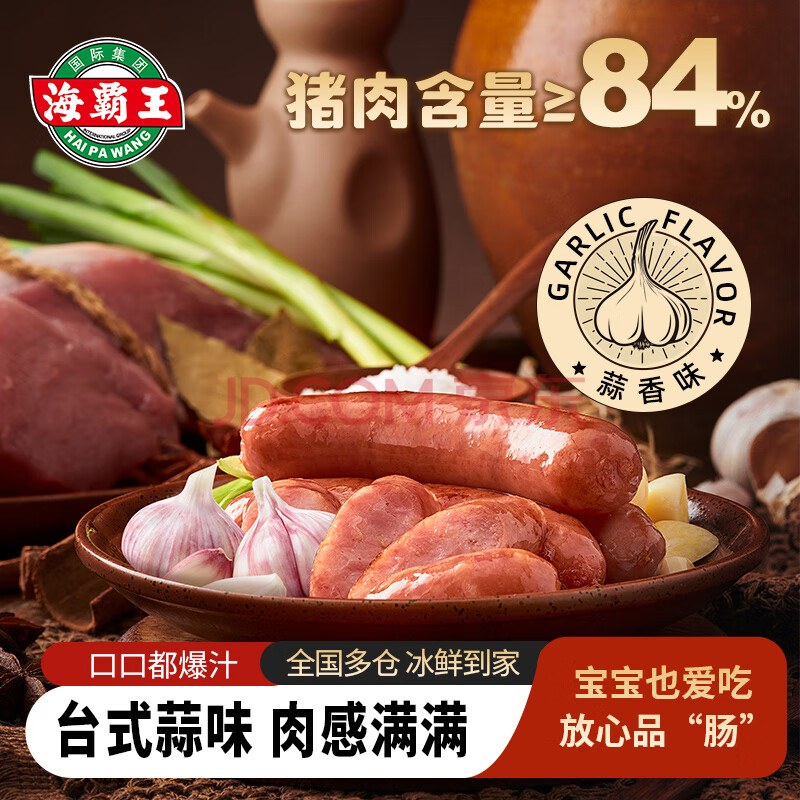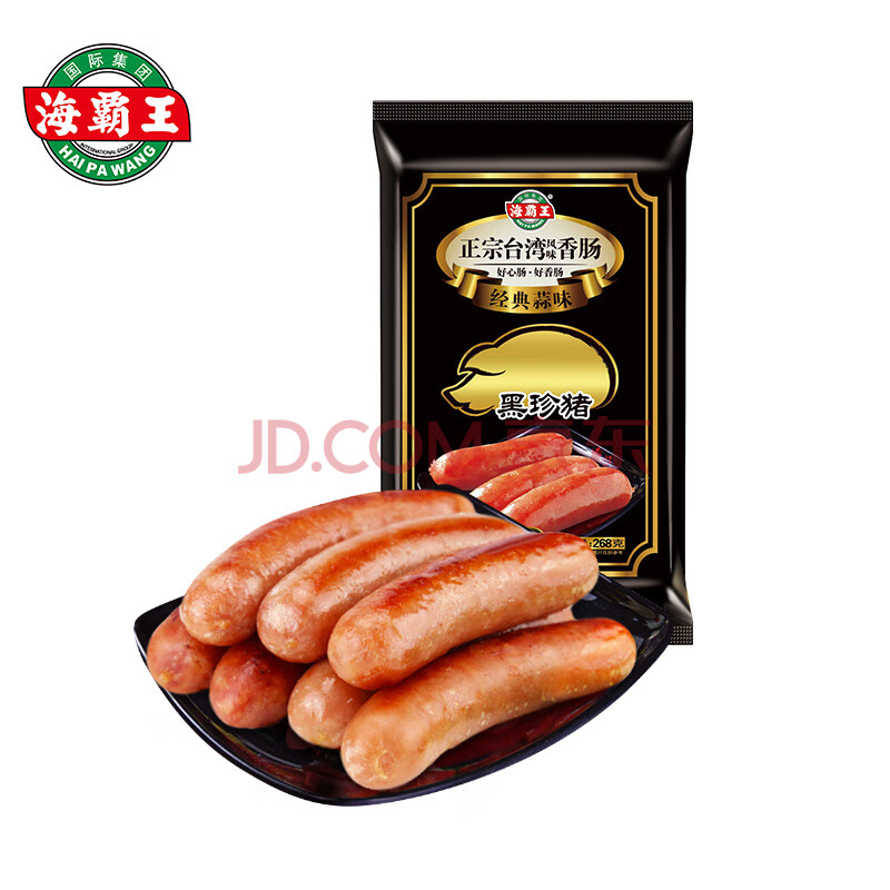 商品名称:海霸王黑珍猪台湾风味香肠 蒜味烤肠 268g 猪肉含量≥84% 烧烤食材