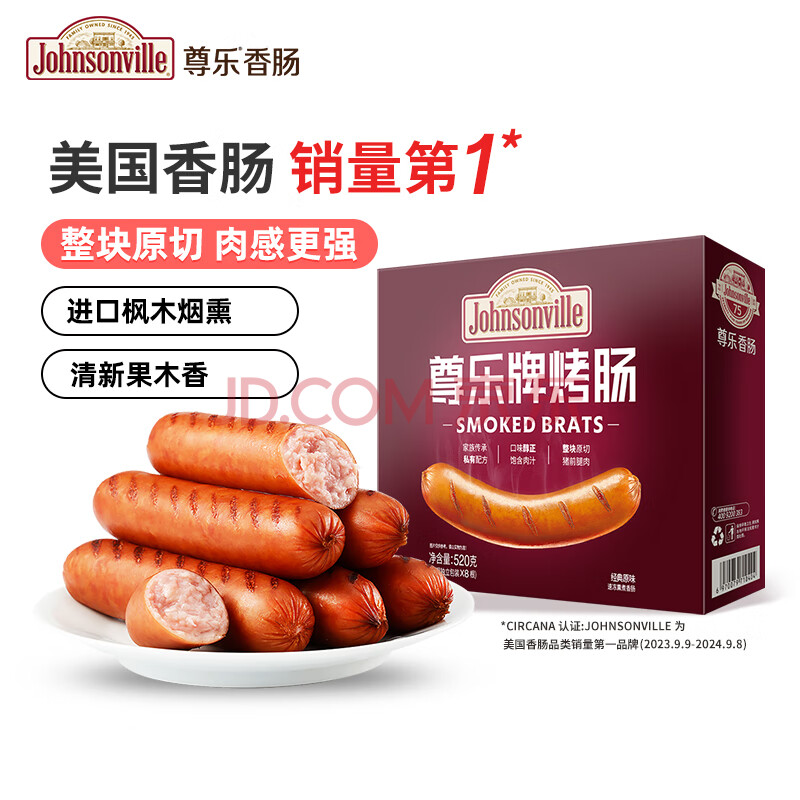 > 尊乐原味香肠520g 早餐肠 西餐食材 烧烤肠 火锅食材肉肠