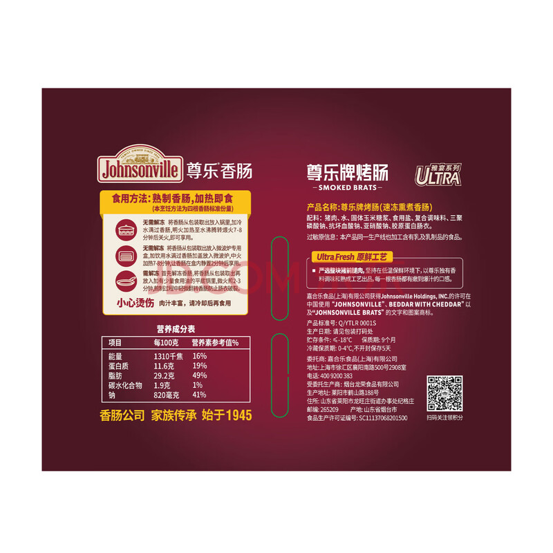 商品名称:尊乐原味香肠520g 早餐肠 西餐食材 烧烤肠 火锅食材肉肠