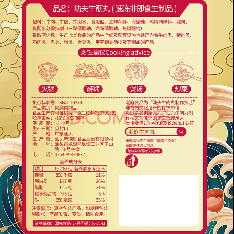 商品名称:潮庭 潮汕功夫牛筋丸250g 牛肉+牛筋含量90%+ 火锅材料食材年货关东煮
