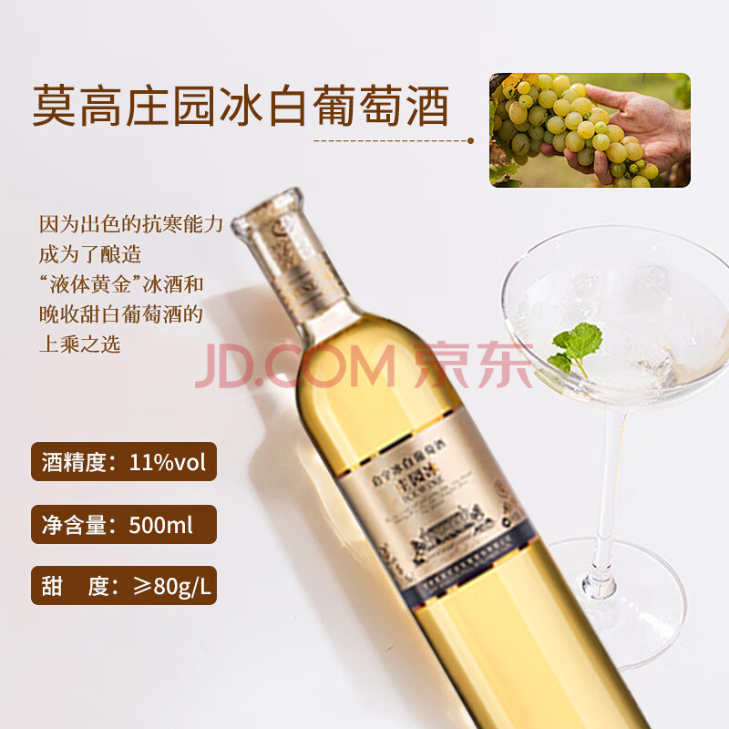 商品名称:莫高(MOGAO)白葡萄酒红酒 甜果酒冰酒 启宇庄园500ml*2红白双支礼盒送礼