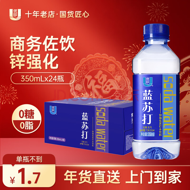 商品名称:优珍蓝苏打水饮料 无气无糖弱碱 350ml*24瓶 整箱装 商务家庭饮用水