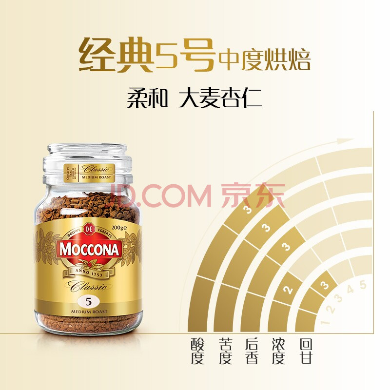 商品名称:摩可纳(Moccona)经典5号冻干速溶黑咖啡100g瓶装 中度烘焙进口拿铁美式冷萃0脂0糖