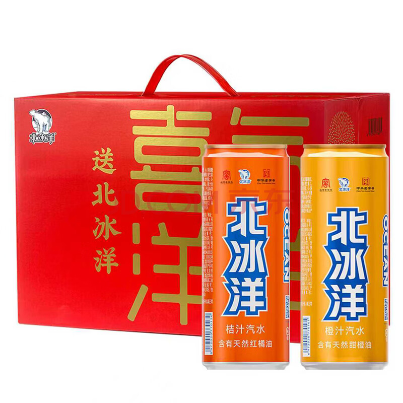 商品名称:北冰洋桔汁+橙汁汽水经典口味碳酸饮料330ml12罐年货装春节送礼礼品礼盒
