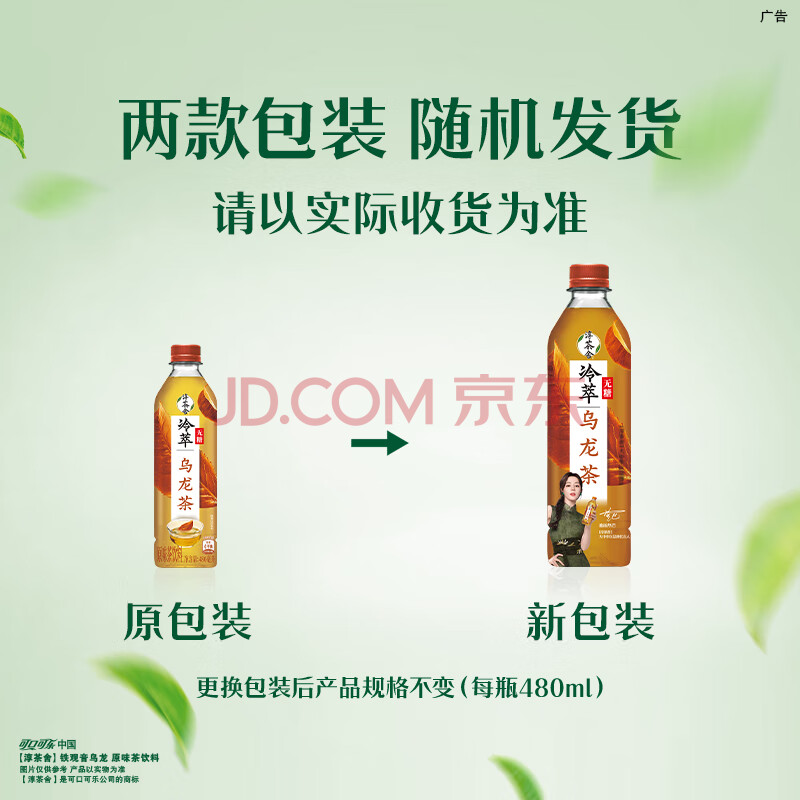 商品名称:可口可乐(Coca-Cola) 淳茶舍 铁观音乌龙 冷萃 零卡路里 无糖茶 480ml*12瓶 整箱装