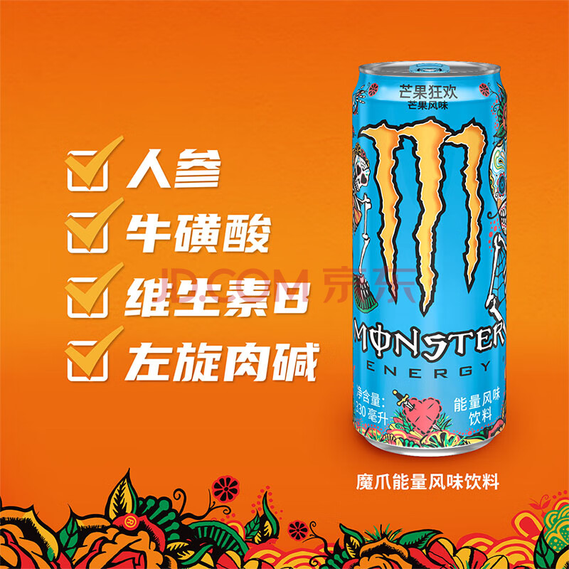 商品名称:魔爪(Monster)芒果味风味饮料 能量饮料 功能饮料330ml*12罐 整箱装