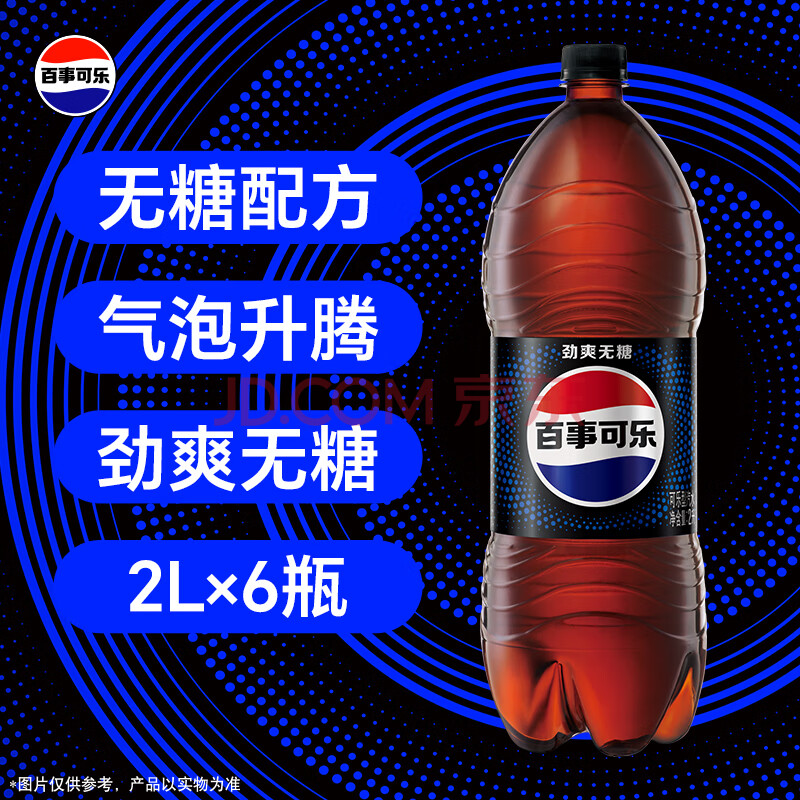 商品名称:百事可乐Pepsi 无糖可乐 碳酸饮料汽水 2L*6大瓶 家庭聚会分享