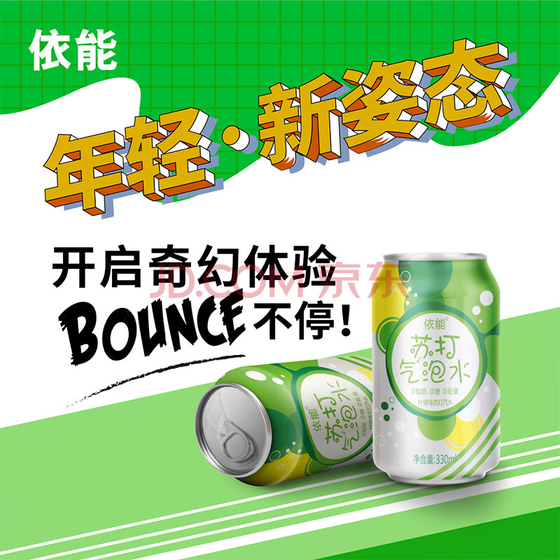商品名称:依能 柠檬味汽水 无糖苏打水饮料 0卡0能量气泡水 330ml*24罐 整箱装