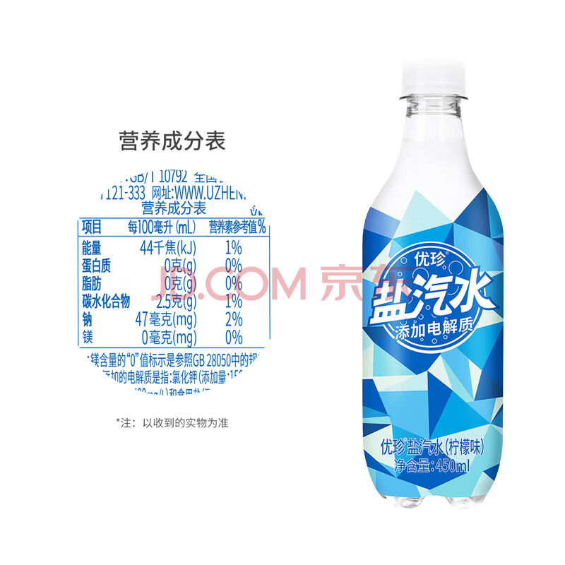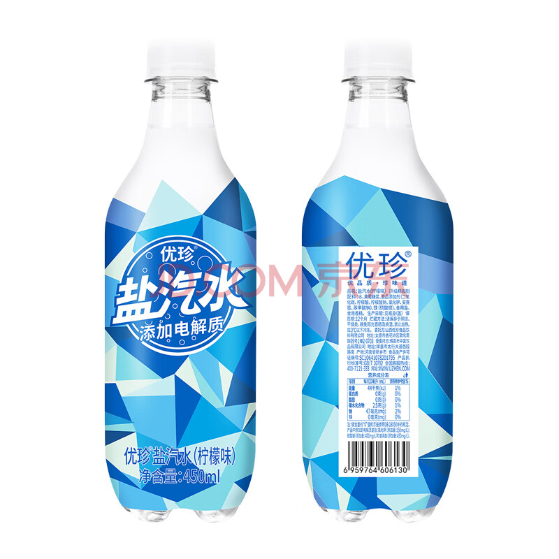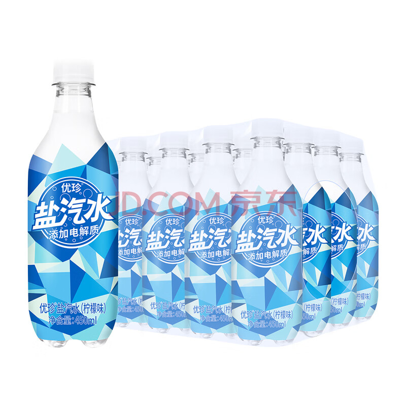商品名称:优珍盐汽水 柠檬味碳酸饮料 含气带盐清爽解渴 450ml*24瓶 塑膜量贩装