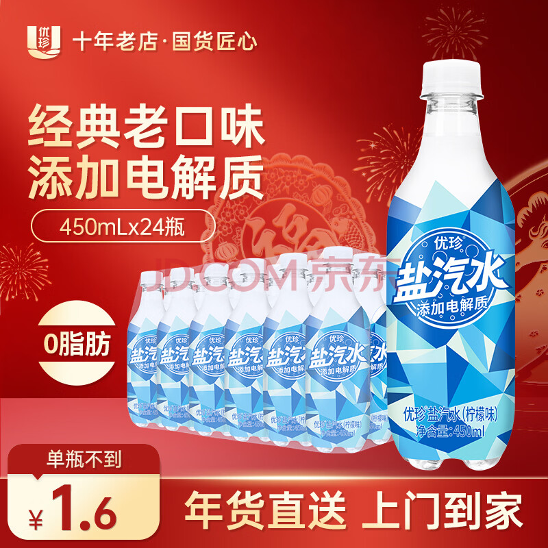 > 优珍盐汽水 柠檬味碳酸饮料 含气带盐清爽解渴 450ml*24瓶 塑膜量贩装