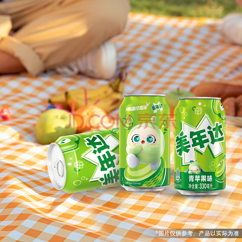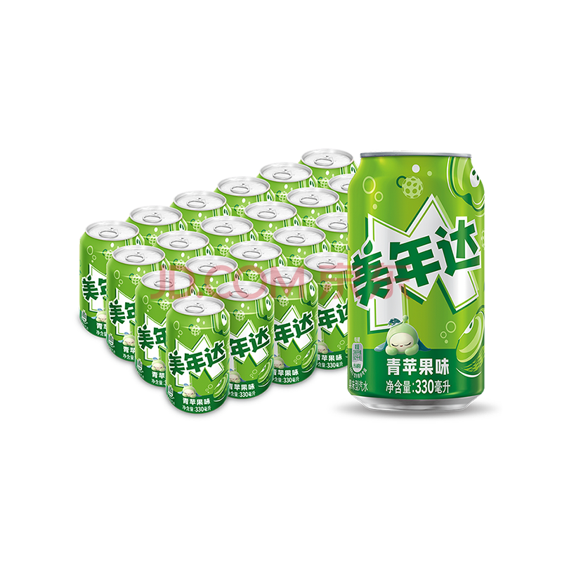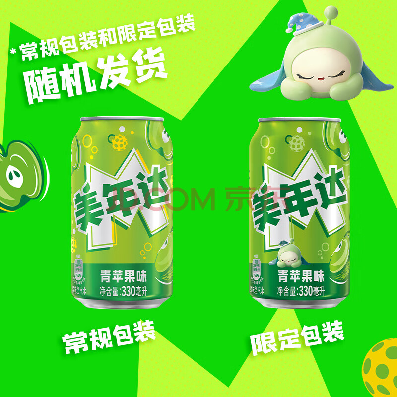 商品名称:百事可乐美年达X蛋仔派对 青苹果味汽水碳酸饮料330ml*24听 新老包装随机