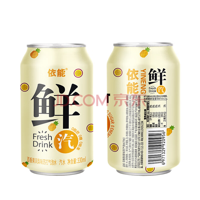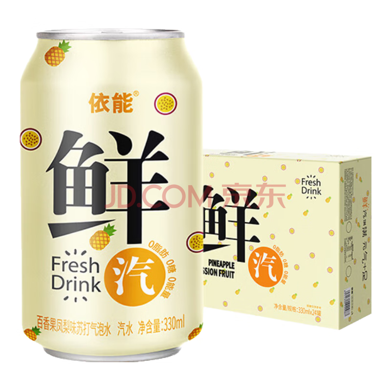 商品名称:依能鲜汽 汽水 百香果凤梨苏打水饮料 无糖0卡气泡水330ml*24罐整箱装